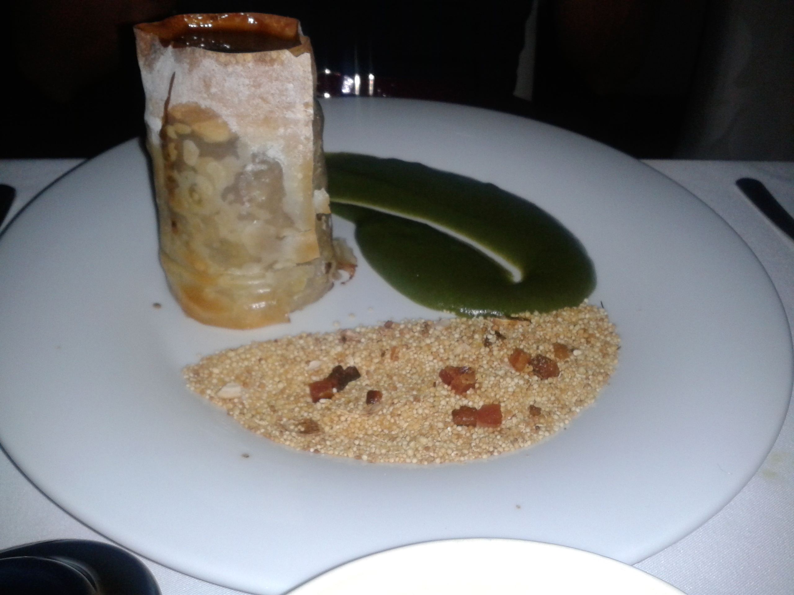 Recomendo a Costelinha assada à vácuo em baixa temperatura, com shiitake e cará em duas texturas (purê e chips) que sai por R$ 44,00, ou a Rabada Tupiniquim, desossada e servida numa casca de massa em forma de cilindro, saborosíssima e com uma apresentação maravilhosa (R$ 52,00). Outro prato delicioso é o Salmão, grelhado no ponto certo sem perder a umidade interna da carne, por R$ 38,00.
